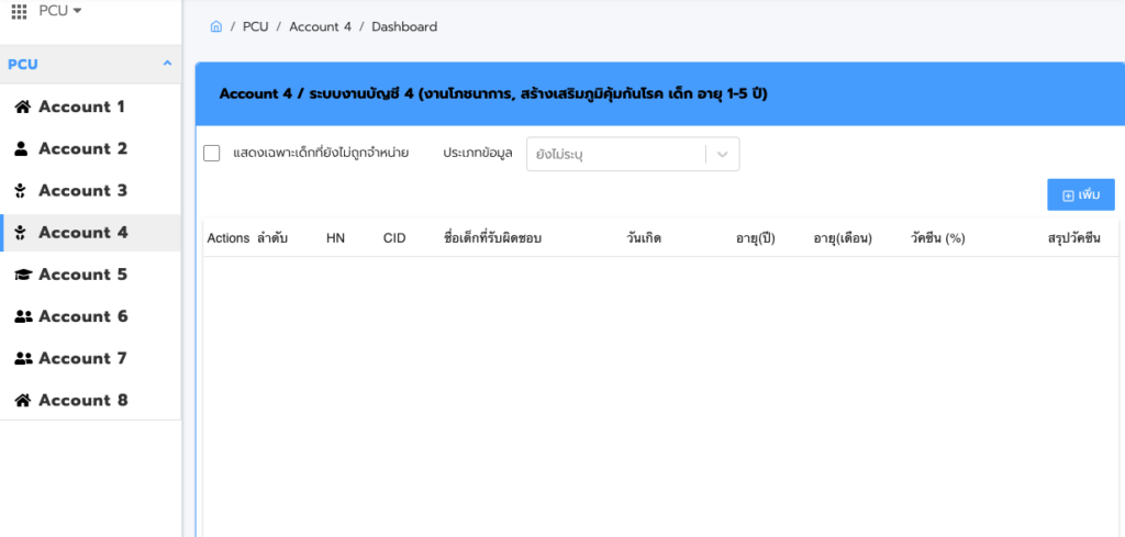1. เข้าใช้งานได้ที่เมนู >> PCU >> ระบบงานบัญชี 4