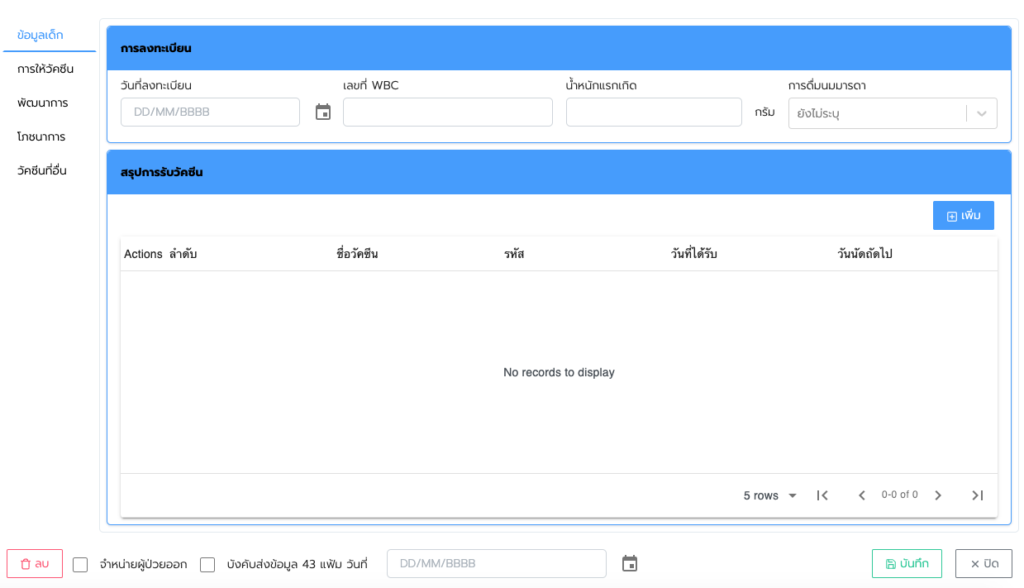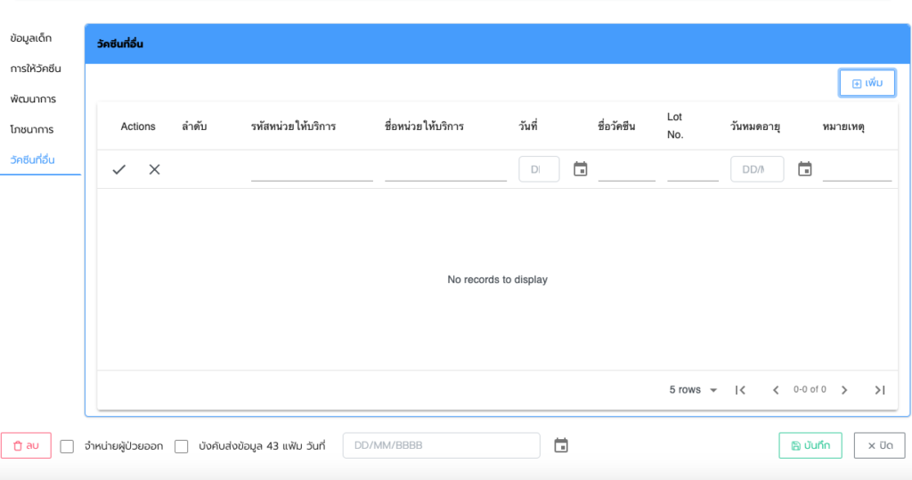การให้ Vaccine เป็นหน้าจอการลงข้อมูล Vaccine ที่เด็กมารับในครั้งนั้นๆ