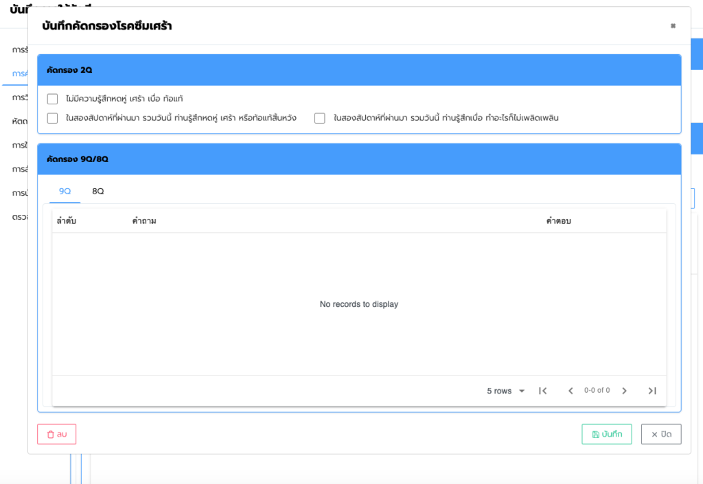 ซึมเศร้า” จากนั้นคลิกที่ปุ่ม “บันทึกการคัดกรอง”