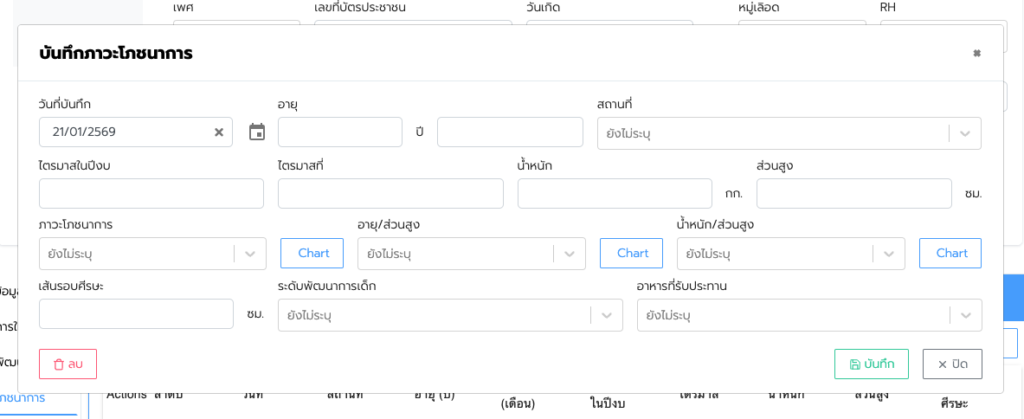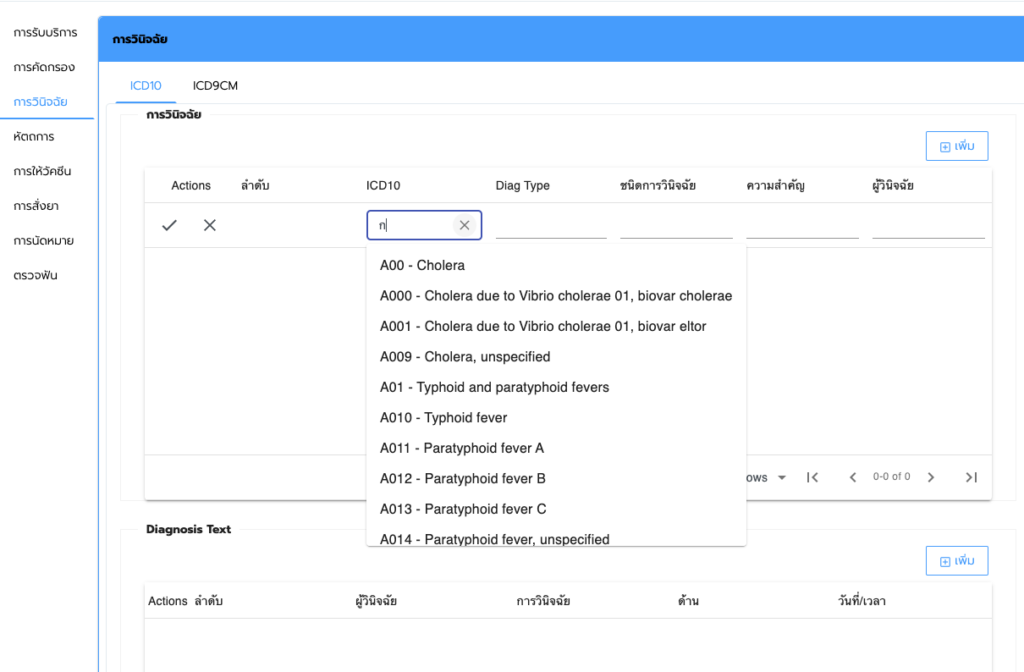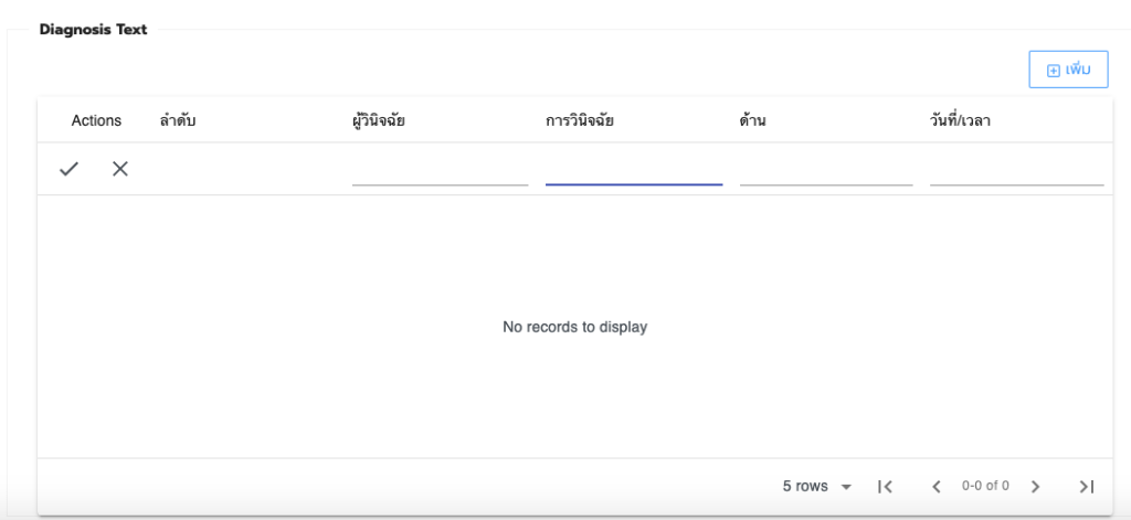 วิธีการบันทึกการวินิจฉัยโรคเป็นข้อความทำได้โดยการคลิกที่ปุ่ม “เพิ่ม”