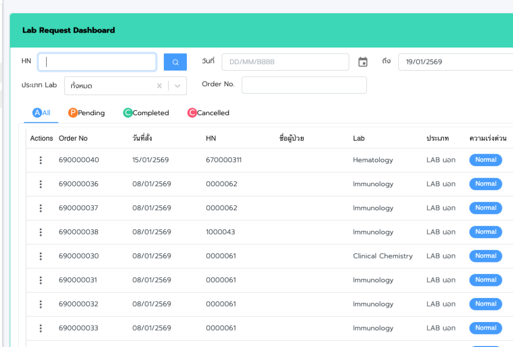 1. เข้าหน้าจอการใช้งานเมนู Laboratory > Lab Request Dashboard