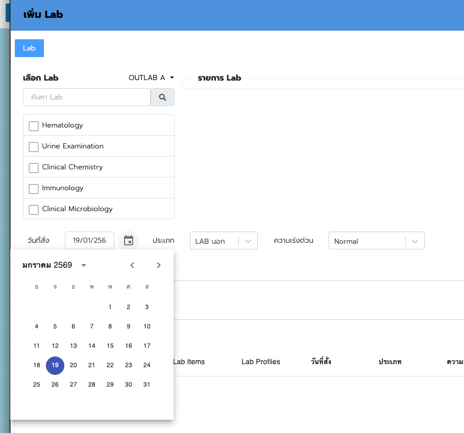 2. กดปุ่ม รายการสั่งLabล่วงหน้าโดยเลือกวันที่ที่ต้องการสั่งLab