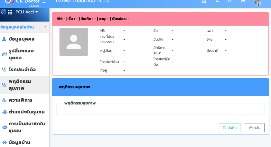 จะปรากฏหน้าต่างค้นหาบุคคล โดยค้นหาได้จาก ชื่อ นามสกุล รหัสบัตรประจำตัวประชาชน หมายเลข HN