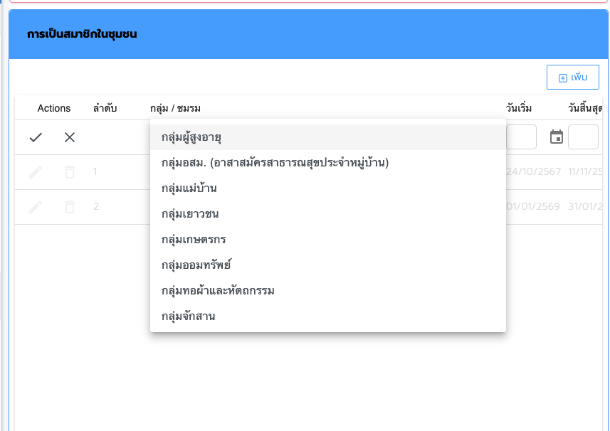 3.4 แถบตำแหน่งในชุมชน กรอกข้อมูลในแถบตำแหน่งในชุมชนเมื่อทราบว่า ประชากรคนนี้มีตำแหน่งในชุมชน เช่น
