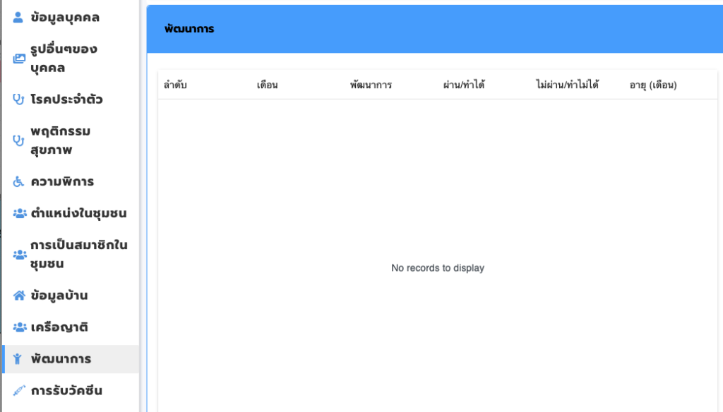 จะเห็นข้อมูลพัฒนาการในหน้าจอข้อมูลบุคคลนี้ดังรูป