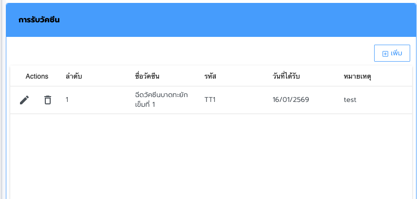ช่วงวัยจะเห็นข้อมูลประวัติการได้รับวัคซีนในหน้าจอข้อมูลบุคคลนี้ดังรูป