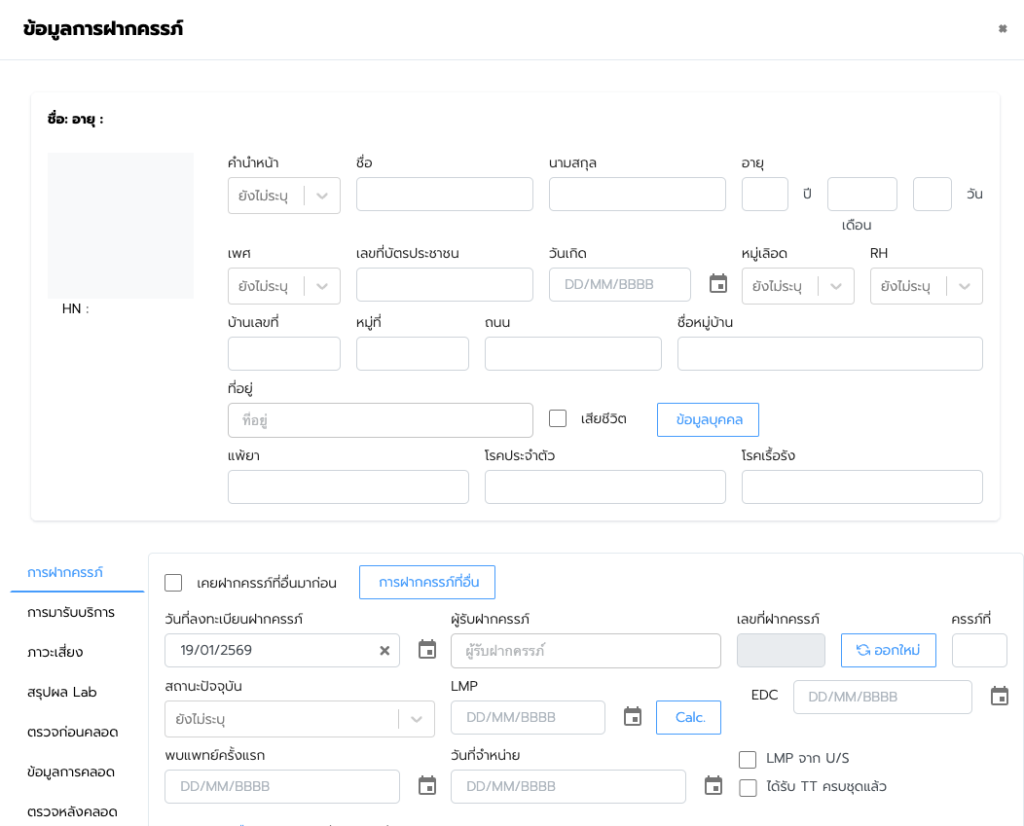จะปรากฏหน้าจอ ให้กรอกรายละเอียดการลงทะเบียนประชากรหรือสามารถนำเข้าข้อมูลจาก patient ได้หากมีประวัติ