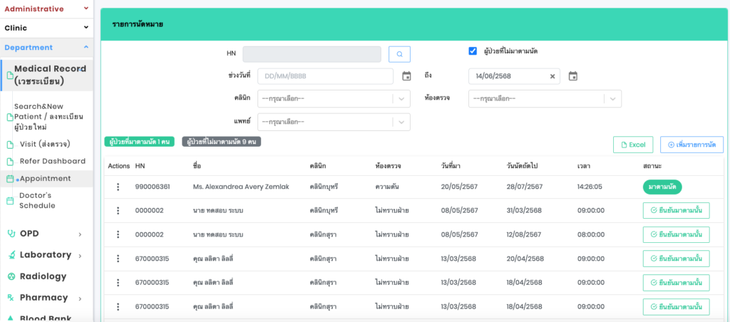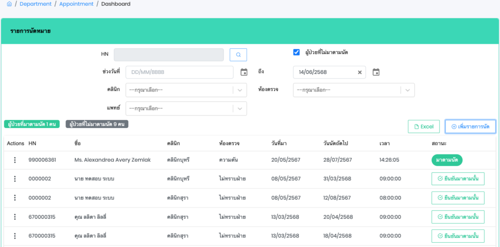 รูปที่ 1 รายการนัดของผู้ป่วย