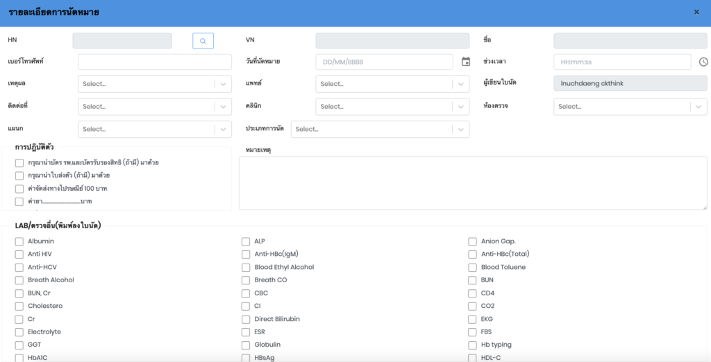 ข้อมูลการนัดหมายของผู้ป่วย/ส่งตรวจ/เพิ่มรายการใหม่สำหรับผู้ป่วยคนเดิม #